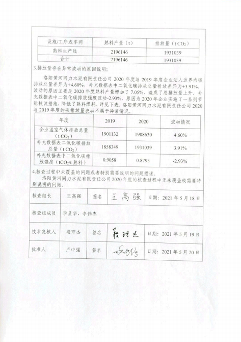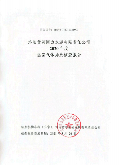 洛陽黃河同力水泥有限責任公司2020年度溫室氣體排放核查報告