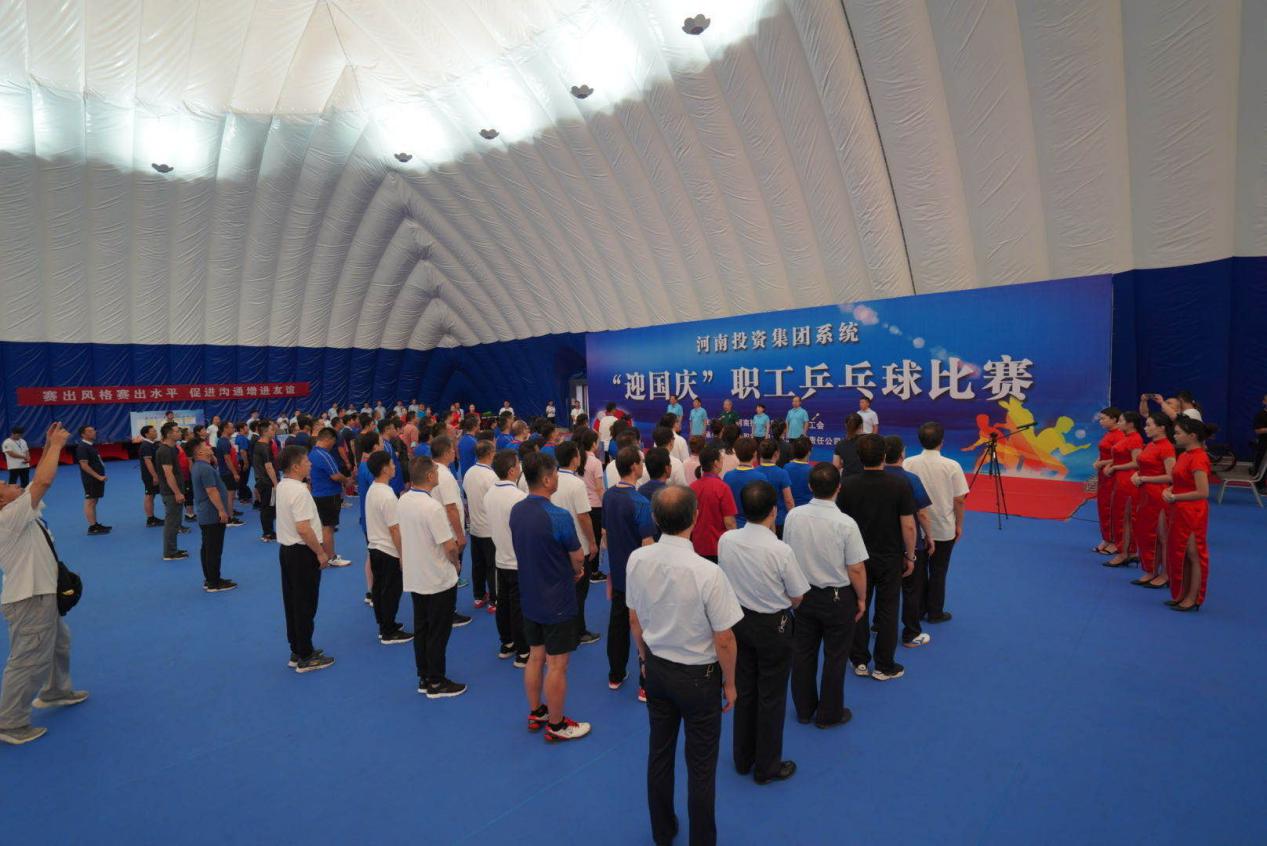 9月10日,河南投資集團“迎國慶”職工乒乓球比賽在洛陽市宜陽縣鳳凰嶺拉開帷幕。開幕式上全體肅立,奏唱國歌,裁判員代表、運動員代表依次進行了宣誓,河南投資集團有限公司黨委委員、紀委書記張宏麗致辭并宣布比賽開幕。
